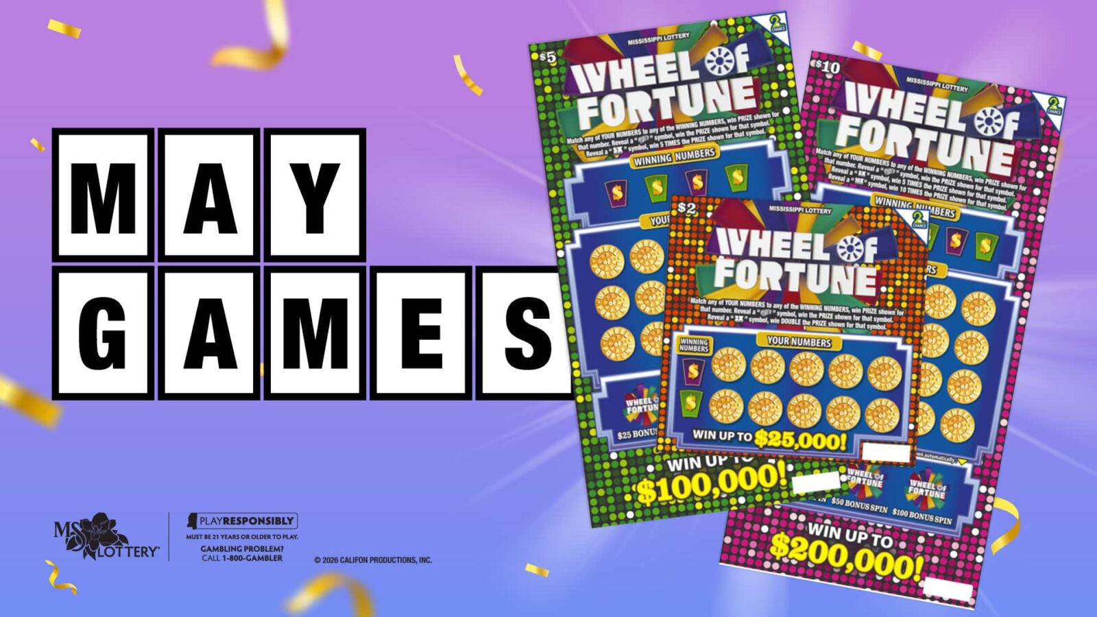 JACKSON, MISS. – Get able to spin massive this Could because the Mississippi Lottery launches three new Wheel of Fortune® scratch-off video games by Tuesday, Could 5. With thrilling play motion, multipliers and prime prizes as much as $200,000, these video games carry the long-lasting recreation present expertise straight to Mississippi gamers.